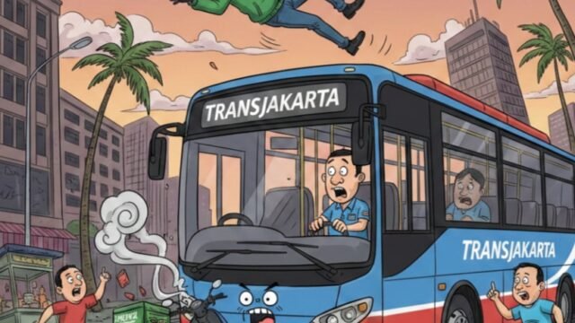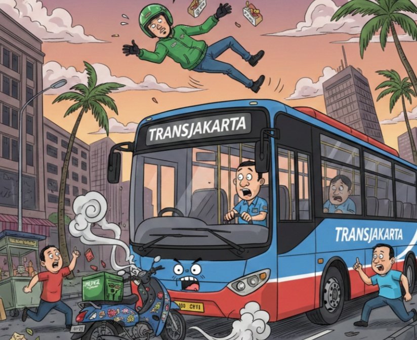 Ojol dan Bus Transjakarta Bertabrakan di Gunung Sahari