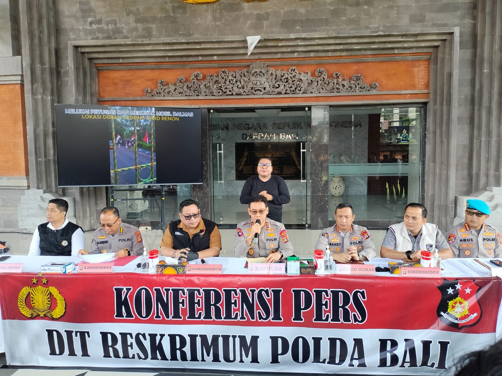 Konfrensi Pers selasa 16 september 2025 didepan para awak media Kapolda didampingi Dirreskrimum, Dirreskrimsus, Dirressiber, Kabid Humas, Kabid Propam dan Kabidlabfor Polda Bali, menyampaikan sesuai hasil penyidikan, pemeriksaan 24 orang saksi, termasuk rekaman CCTV di seputaran TKP dan barang bukti yang ada Polda Bali menetapkan 14 orang tersangka diantaranya 10 orang dewasa dan 4 orang anak-anak.